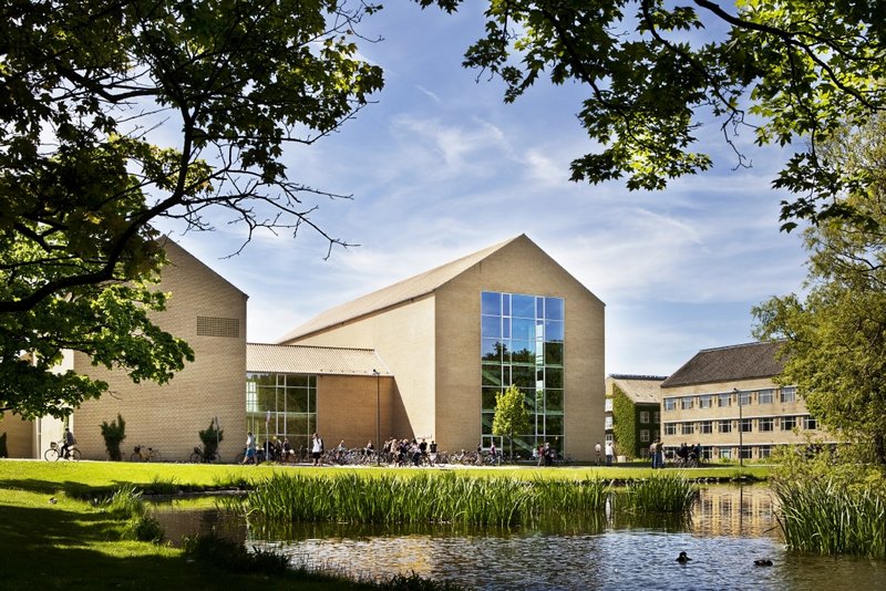 Søauditorierne is a collection of lecture theatres located near the ponds of the university park. The building was designed by C.F. Møller Architects with yellow brick walls as with the rest of the university campus. On the ceiling is a large painting by Danish artist Per Kirkeby