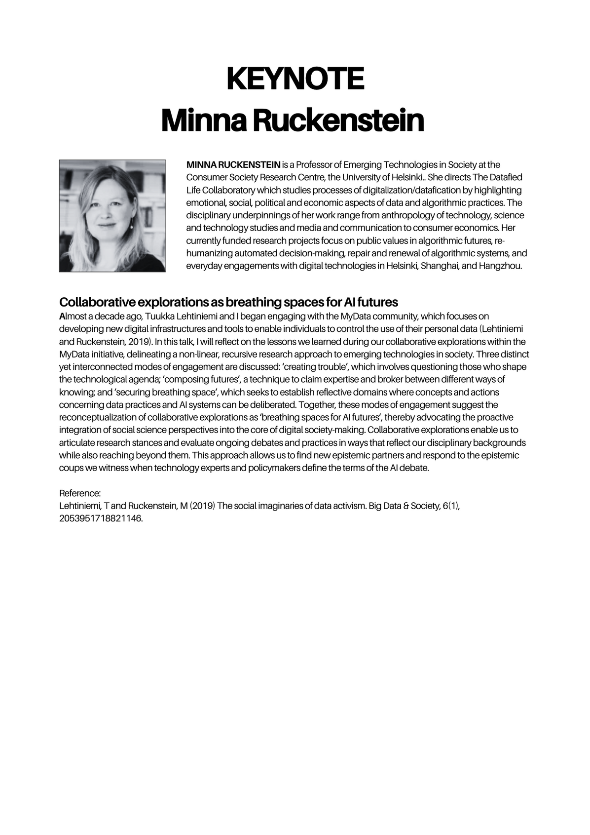 KEYNOTE I: Sun-ha Hong